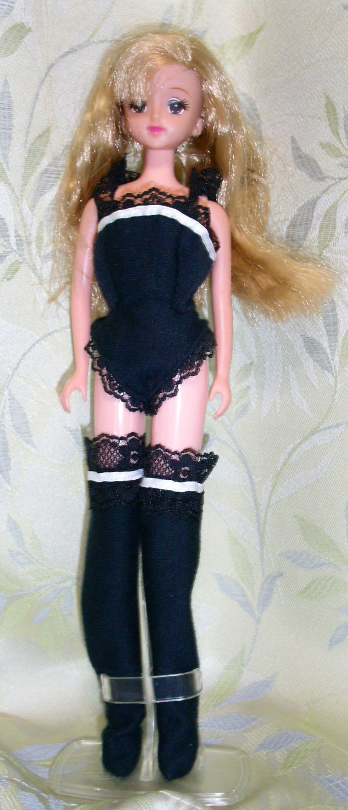 ストッキングというか、オーバーニーソックス このほかに、ハイソックス(膝丈程度) ソックス(足首上くらい) チュール地のストッキングを作成予定。 ……チュール地はナチュラルボディ用のを。 旧体版は、買ったときの付属品のストッキングを流用できるので。 |