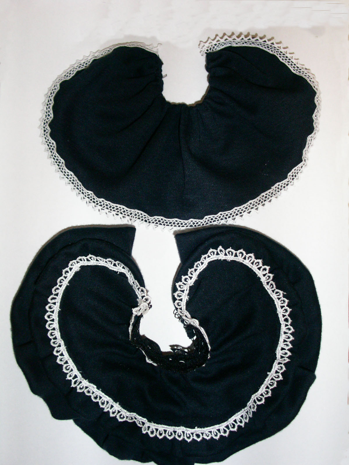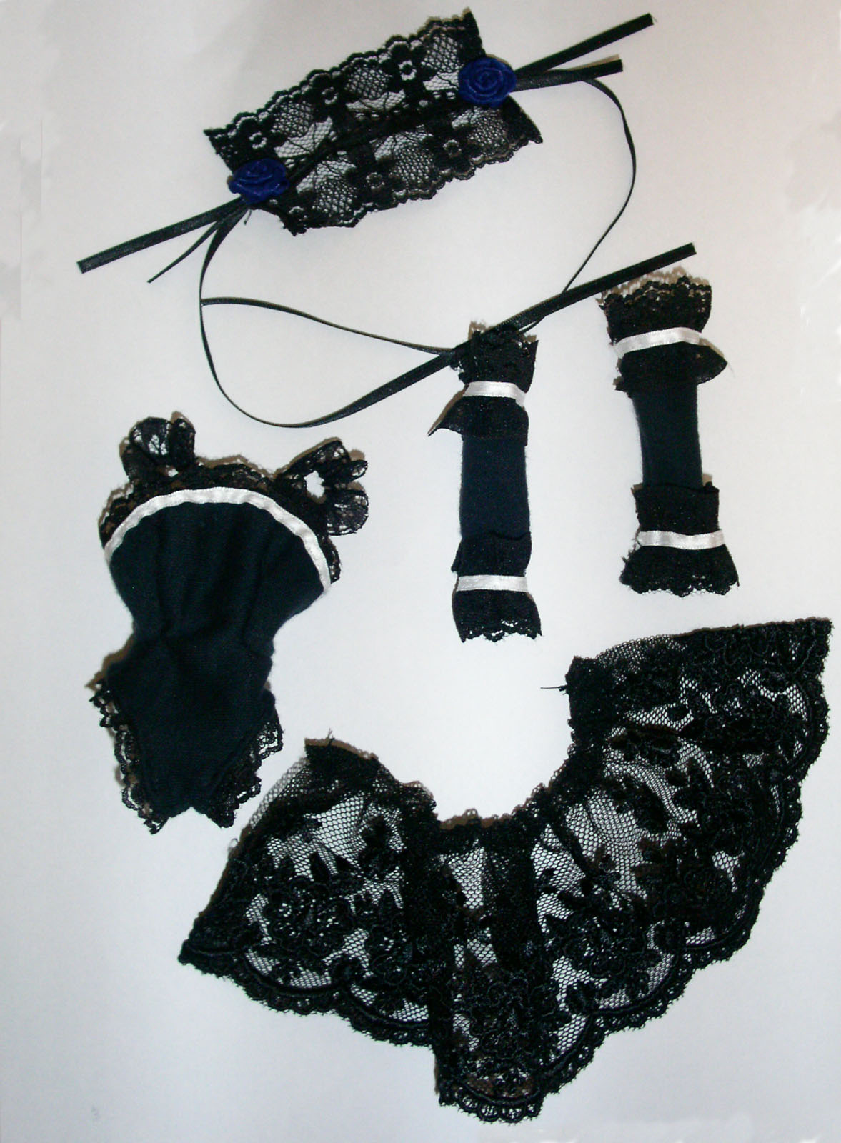 ヘッドドレス(別ドレス用に作っておいたもの)・バラとリボン付き アームカバー ボディスーツ ケープ(ペチコート・オーバーコートに転用可能) このほかに、冬用のボレロを作成予定。 |